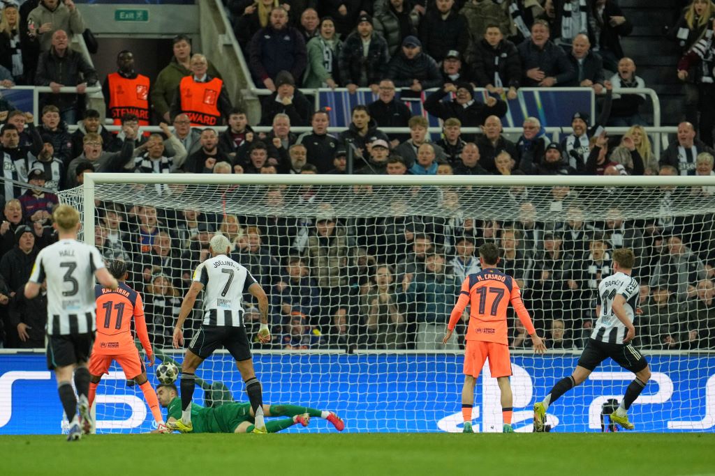 Фудбалери Њукасла и Барселоне одиграли су на Сент Џејмс Парку нерешено, 1:1 (0:0) у првој утакмици осмине финала Лиге шампиона. Њукасл је повео голом Харвија Барнса у 86. минуту. Фудбалери Барселоне су до ремија стигли поготком Ламина Јамала у 90+6. минуту из пенала.