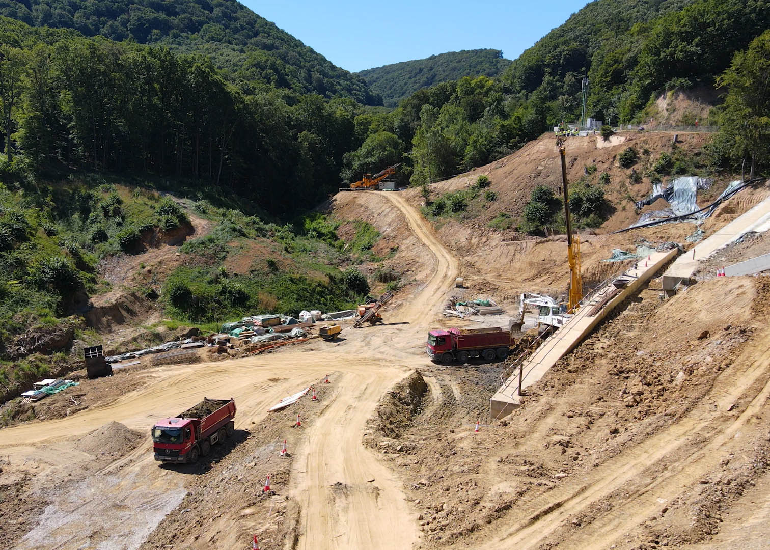 Радови се одвијају и са те стране, а приметно је да је раскрчен простор за долазак машина и опреме, као и да је урађен камп за раднике.