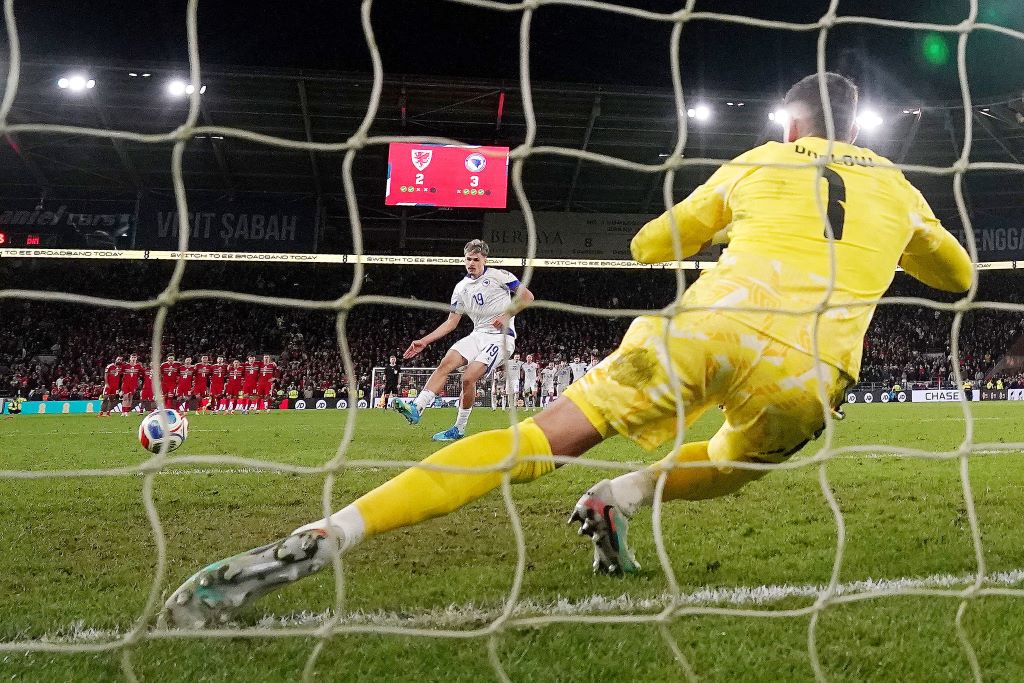 Ермедин Демировић није реализовао први пенал за БиХ, али су затим Бренан Џонсон и Неко Вилијамс били непрецизни у трећој и четвртој серији па је тако гостујућа репрезентација дошла до финала баража за СП.