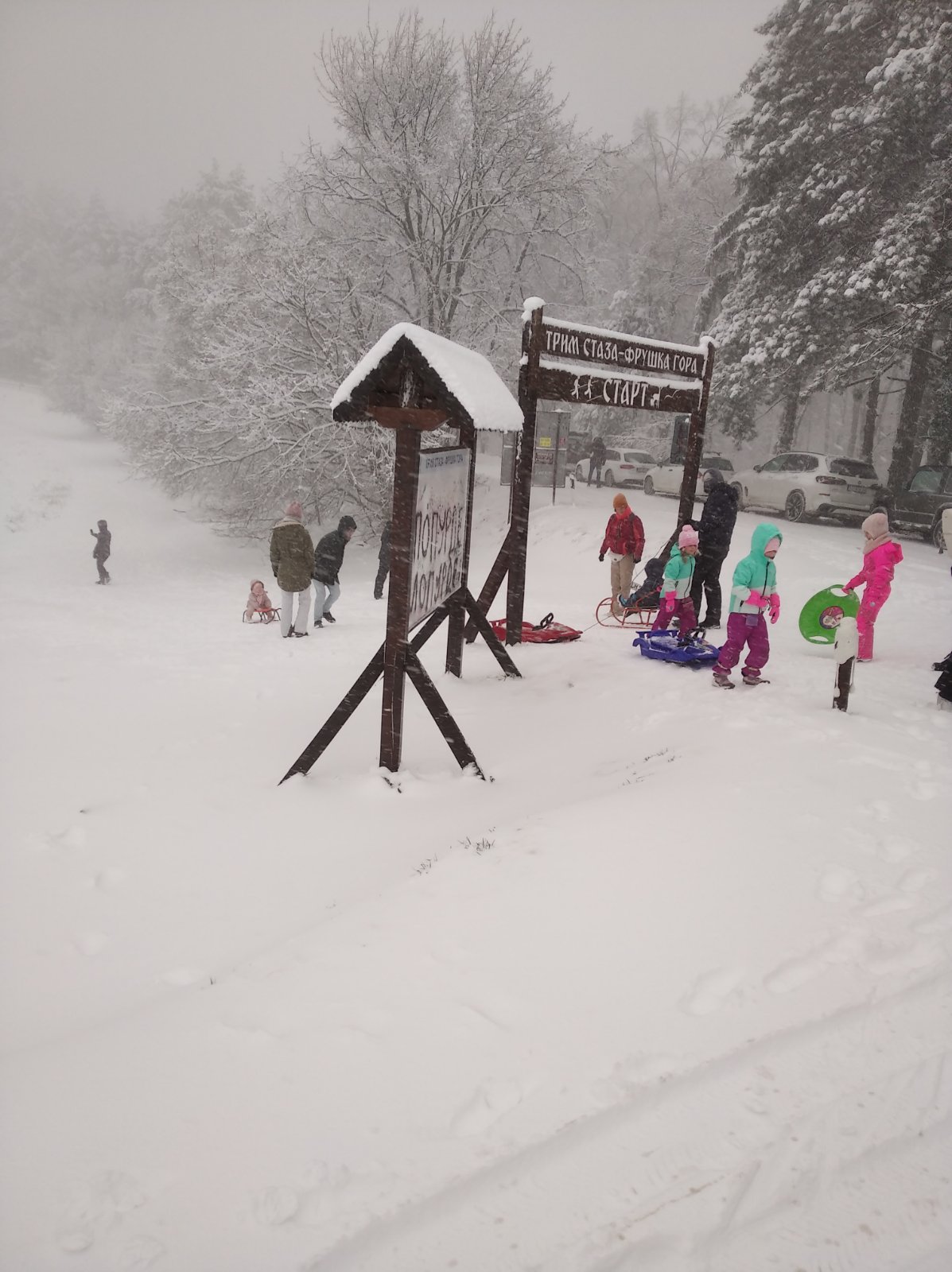 И поред неповољних временских услова, на Иришком венцу има и ентузијаста који су искористили снежни покривач и дошли на санкалиште код Информативног центра ЈП НП „Фрушка гора“.
