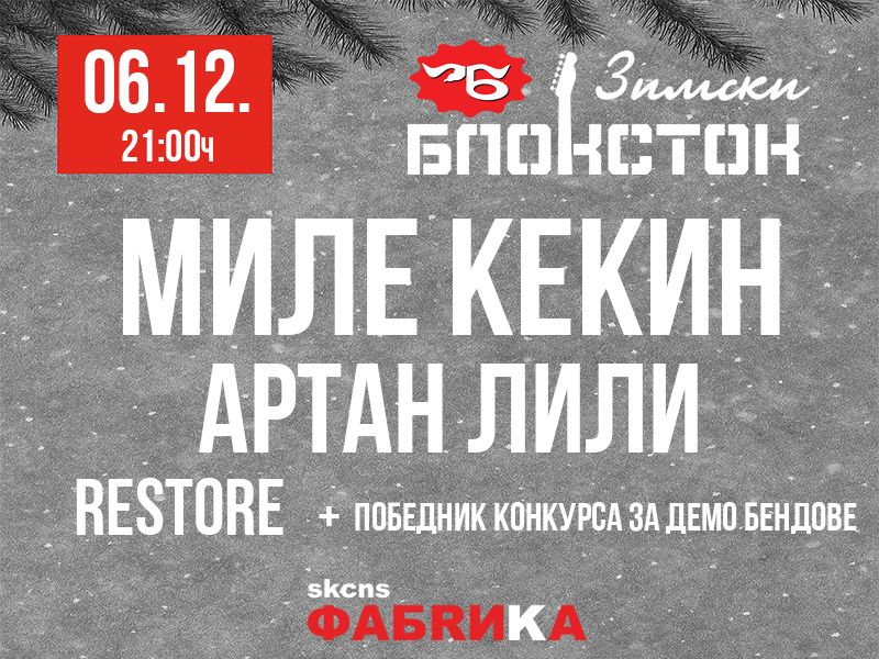 Зимски Блоксток од 2018. године неизоставни је део културне мапе Новог Сада, а 6. децембра, на сцени ће укрстити легенде и нове таласе рокенрола, па ћемо у једној вечери слушати Милета Кекина, Артан Лили, млади зрењанински бенд Ресторе али и победника овогодишњег Блоксток конкурса за демо бендове.