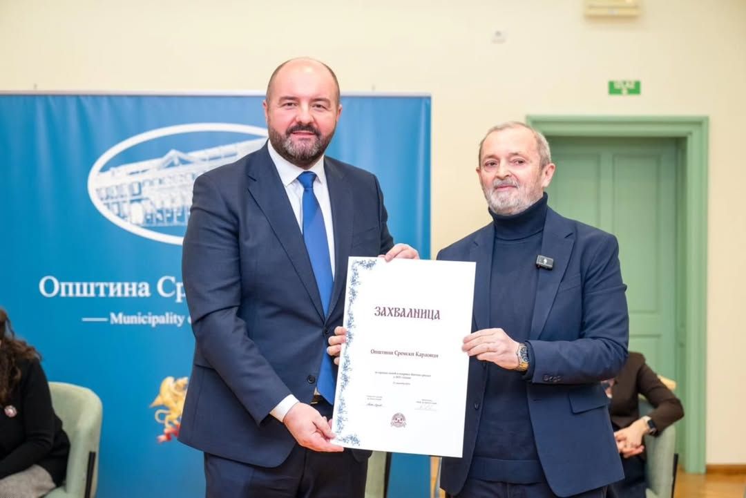 Током свечаног програма, представници Матице српске уручили су захвалницу Општини Сремски Карловци у знак признања за дугогодишњу плодну сарадњу и континуирану подршку културним и научним активностима које доприносе очувању националног идентитета.