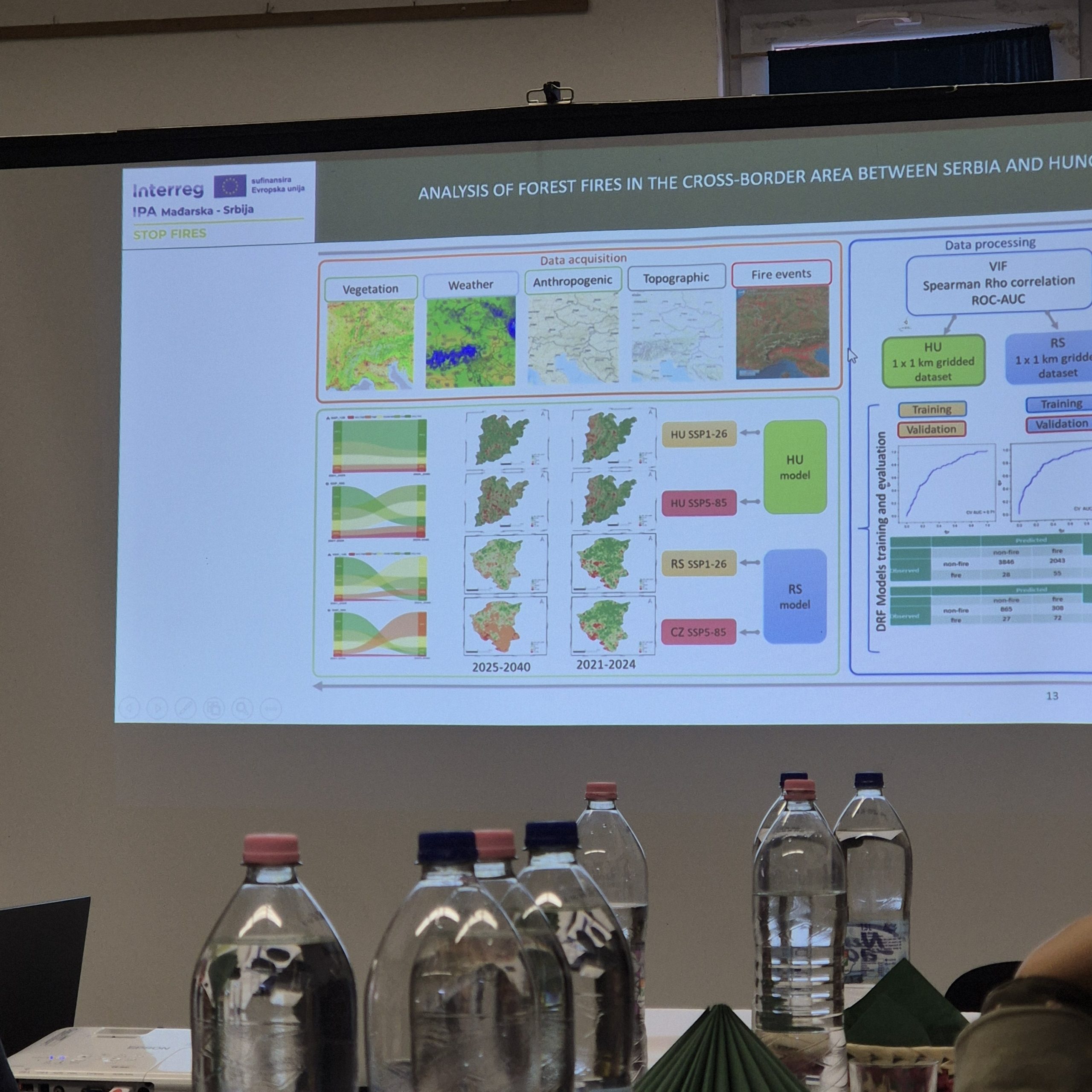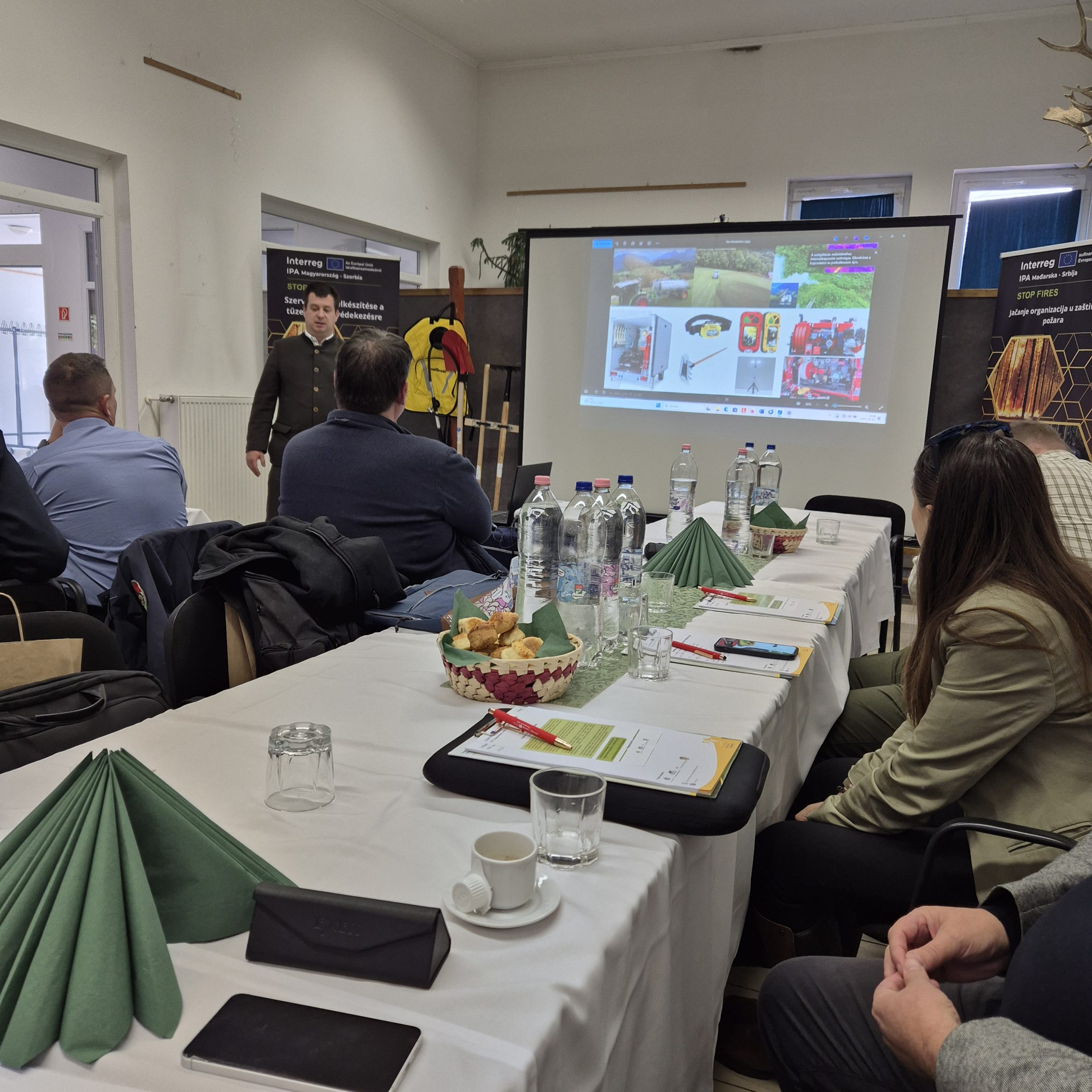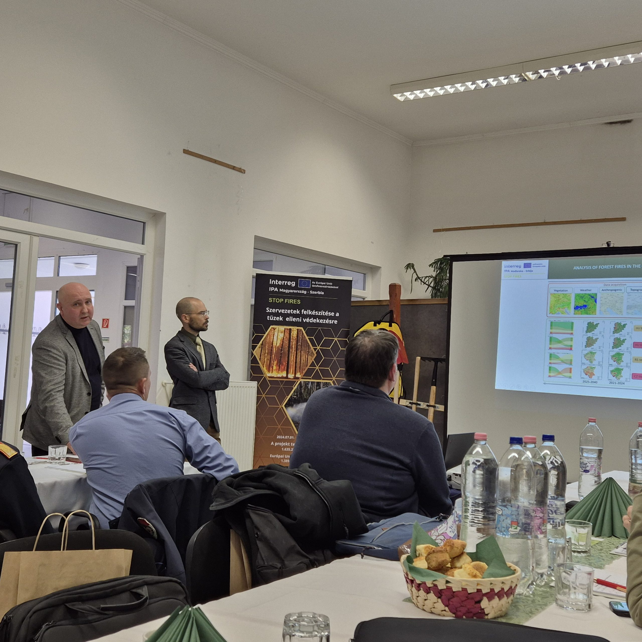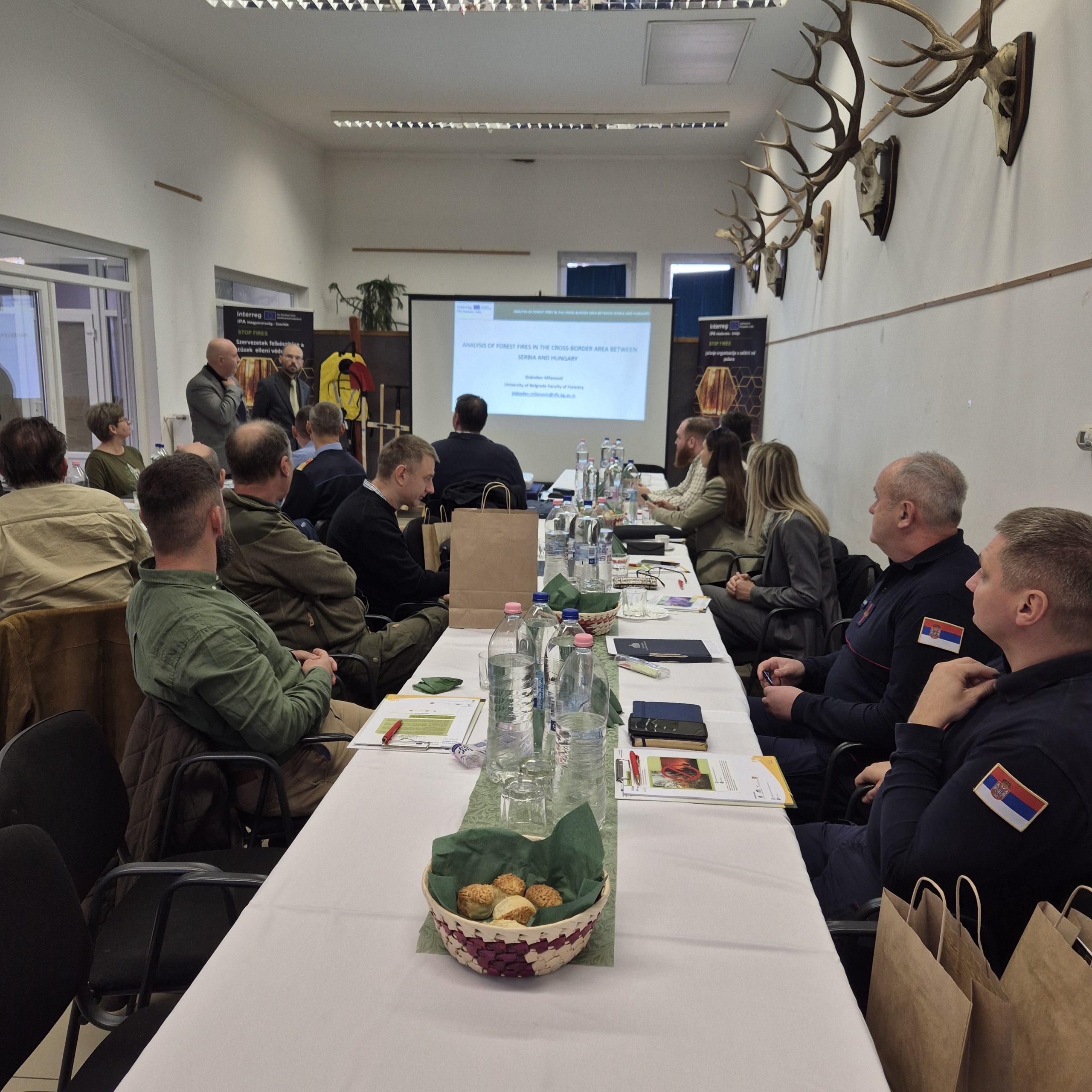 Током излагања и дискусије, учесници су се осврнули на различите аспекте заштите шума од пожара — од изазова са којима се суочава жупанија Бач-Кишкун, о чему је говорио потпуковник Balazs Wicker, о шумским пожарима који су се догодили у Мађарској 2025. године до мера превенције које је представио Péter Debreceni из мађарске Националне управе за безбедност ланца исхране. Проф. др Слободан Милановић са Шумарског факултета, Универзитета у Београду, представио је резултате анализе шумских пожара на пограничном подручју између Србије и Мађарске израђене у оквиру пројекта.