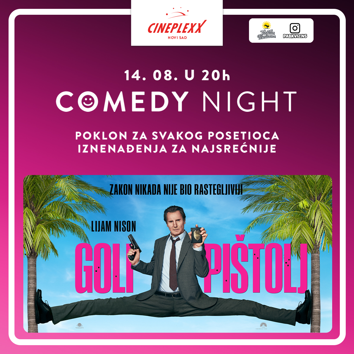 Љубитеље комедије очекује незаборавно вече у биоскопу Cineplexx Нови Сад, где ће у четвртак, 14. августа у 20 часова, премијерно бити приказан нови наставак култне франшизе „Голи пиштољ“, уз посебан догађај — Comedy Night.
