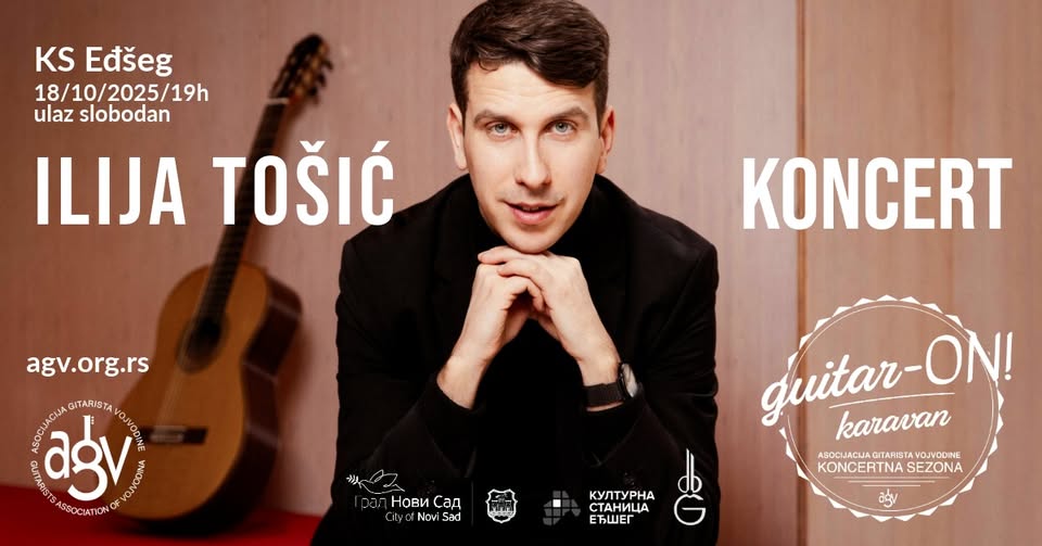 Сезону ће отворити концерт Илије Тошића, српског гитаристе који живи и ради у Немачкој. Илија ће наступити у суботу, 18.10.2025. године у 19х у Културној станици „Еђшег“ (Антона Чехова 4) . Улаз је слободан.