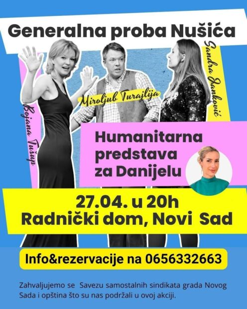Хуманитарна представа „Генерална проба Нушића“ у понедељак, 27. априла