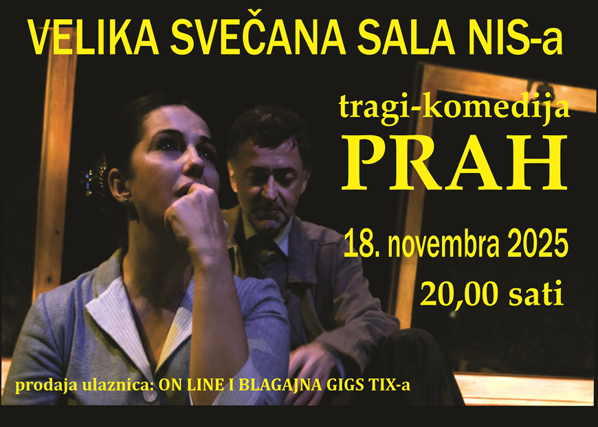 Позоришна представа “Прах” у извођењу Наташе Нинковић и Зорана Цвијановића одржаће се у уторак, 18. новембра са почетком у 20.00 часова у великој свечаној сали НИС-а.
