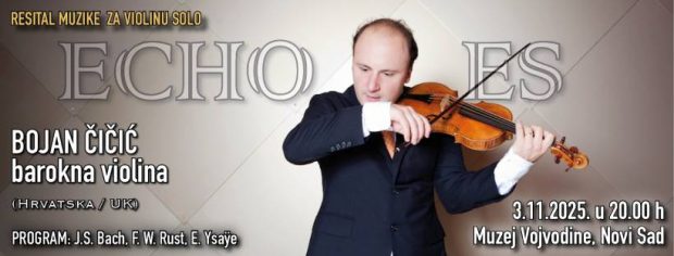 У понедељак, 3. новембра 2025. године, у Музеју Војводине у Новом Саду, у оквиру јубиларног 10. фестивала Дани барокне музике, одржаће се концерт „Echoes” – програм који по први пут доноси новосадској публицистичко-солистички рецитал Бојана Чичића, једног од најистакнутијих барокних виолиниста данашњице.