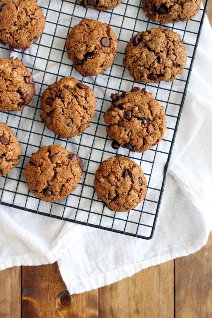 Загрејте рерну на 190°c. Помешајте бадемов путер, мед, уље и овсене пахуљице. Додајте суво грожђе и бадеме. Обликујте тесто у мање лоптице. Ставите их на плех и мало их притисните од горе да постану пљоснате. Пеците их око 10 минута. Нека се потпуно охладе пре јела. Чувати у затвореној посуди до 4 дана.