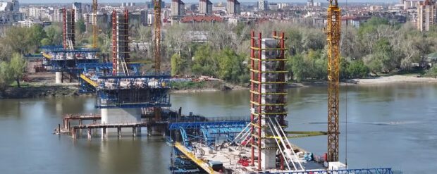 Радови на изградњи моста увелико напредују. Завршени су темељи и стубови, док се изнад Дунава већ спајају сегменти конструкције, што јасно показује да пројекат улази у видљиву завршницу.