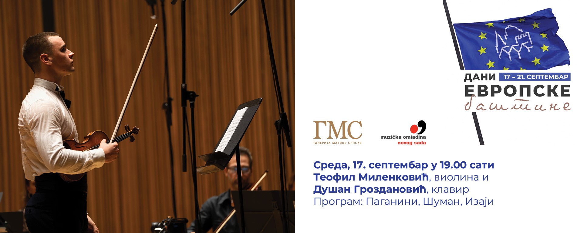 У оквиру манифестације „Дани европске баштине“ у Галерији Матице српске 17. септембра биће одржан концерт младог виолинисте Теофила Миленковића, уз клавирску сарадњу Душана Гроздановића.