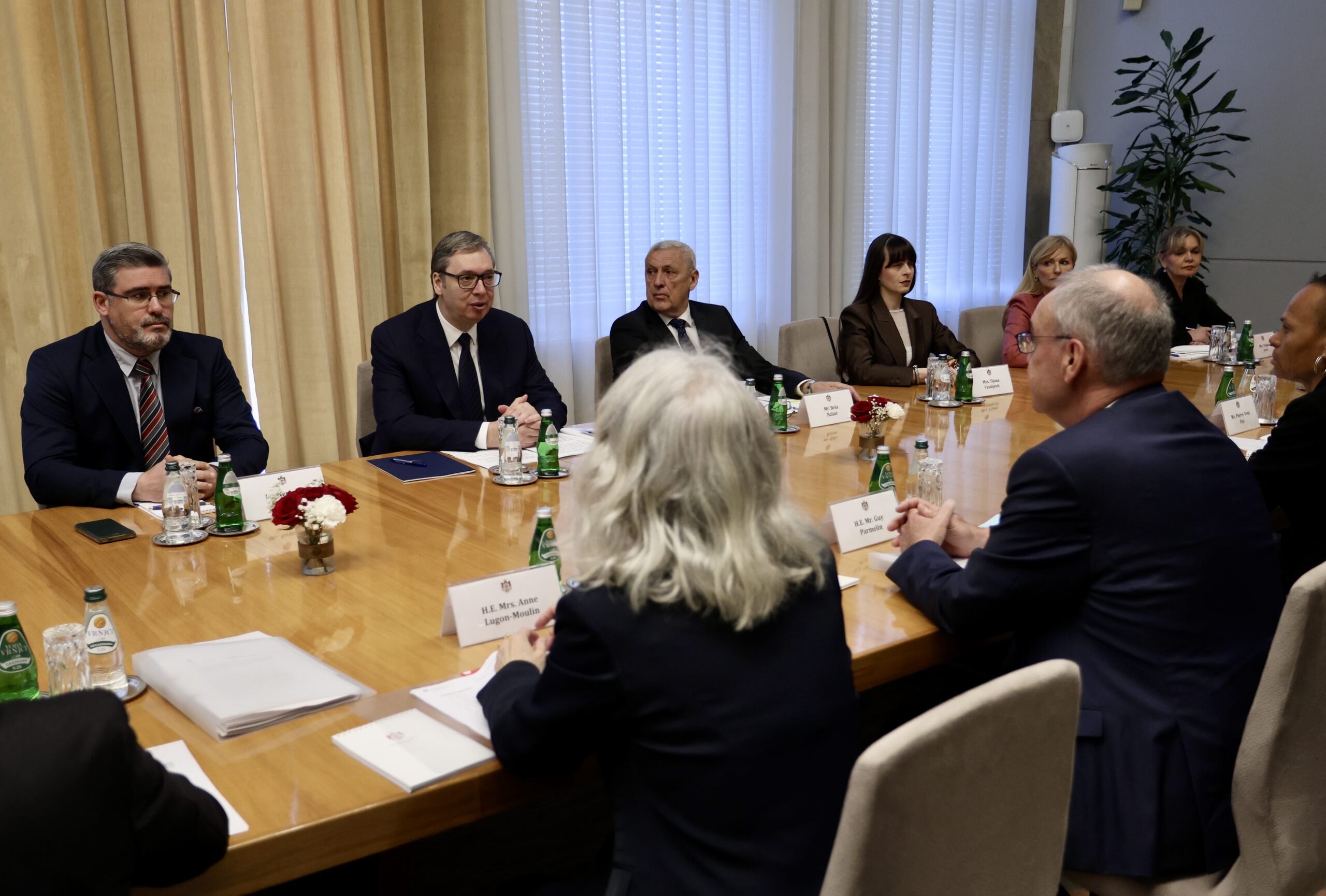 У Палати Србија почео је састанак чланова делегација Србије и Швајцарске које предводе председници две земље, Александар Вучић и Ги Пармелан.
