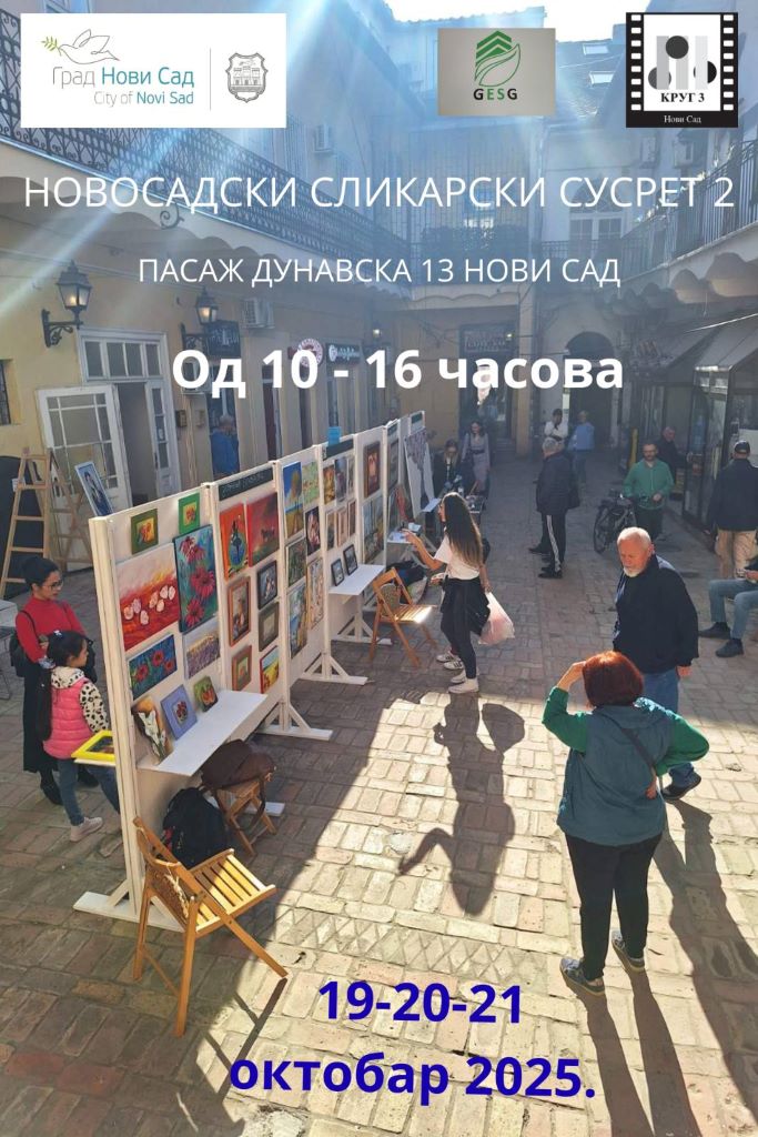 Уметничка манифестација “Новосадски сликарски сусрети 2” одржаће се од 19. до 21. октобра 2025. године, у периоду од 10 до 16 часова у Новом Саду, на локацији Дунавска 13.