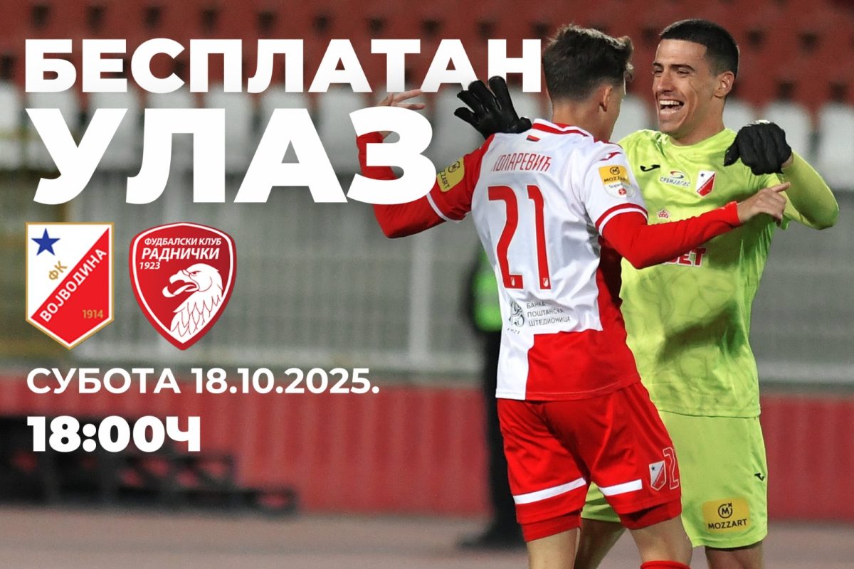 Навијачи фудбалског клуба Војводина имаће прилику да бесплатно присуствују мечу 12. кола Моцарт Бет Супер лиге Србије, који ће се одиграти у суботу на стадиону „Карађорђе“ против екипе Радничког 1923 из Крагујевца.